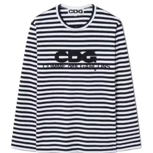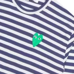 CDG Play Women’s Green Emblem Striped L/S Navy/White T-Shirt