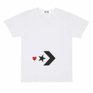 CDG Play White T-Shirt With Camo Printed Small and Big Hearts