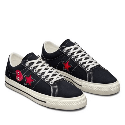 Step into timeless streetwear style with the Cdg Converse One Star Low Top Black – a bold fusion of Japanese minimalism and American sneaker heritage. This low-top sneaker reimagines the iconic One Star silhouette through the creative lens of Comme des Garcons PLAY, featuring the signature heart logo with eyes peeking through the all-black canvas upper.