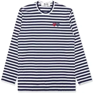 Elevate your casual wardrobe with the CDG Play Basic T-Shirt Two Emblems (Burgundy), a stylish piece that blends comfort with the signature playful aesthetic of Comme des Garçons. Crafted from premium soft cotton, this T-shirt ensures a breathable and lightweight feel, perfect for everyday wear. The standout design element lies in the iconic two heart emblems, positioned neatly to add a unique twist to an otherwise minimal silhouette. The bold burgundy color enhances the T-shirt’s versatility, making it easy to pair with jeans, chinos, or even layered under jackets for a trendy look.