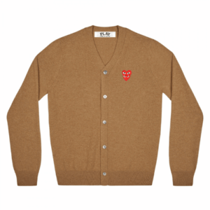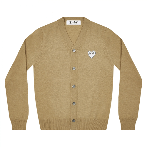 CDG Play Cardigan White Heart Natural Series Camel is the perfect blend of sophistication, comfort, and iconic streetwear style. Designed by the renowned Japanese fashion house Comme des Garcons, this men’s cardigan is part of the coveted Natural Series collection—offering a warm, earthy tone in an elegant camel color that complements any wardrobe.