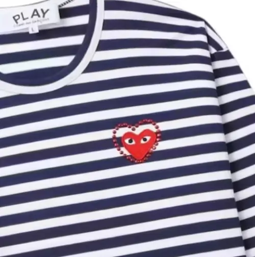 The CDG PLAY Metalstone Heart Striped L/S Tee (Navy/White) is a true statement piece that blends playful design with timeless sophistication. Known for its effortless style and premium craftsmanship, this long-sleeve tee embodies the perfect balance between modern streetwear and classic fashion. The navy and white striped pattern gives it a bold yet minimal aesthetic, making it an ideal choice for any season.