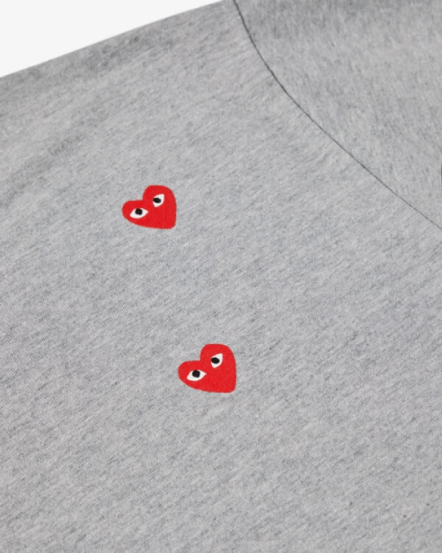 Elevate your casual wardrobe with the CDG Play Multi Red Heart Logo T-Shirt Grey, a perfect blend of comfort, style, and iconic design. This t-shirt from Comme des Garçons Play is instantly recognizable thanks to its signature multi red heart logo, making it a must-have for fashion enthusiasts who appreciate subtle yet striking designer pieces.